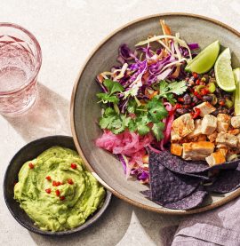 Tacosallad med kyckling, svart bönsalsa och guacamole