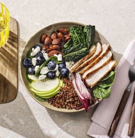 Kycklingsallad med quinoa, äpple, blåbär, fetaost och mandlar