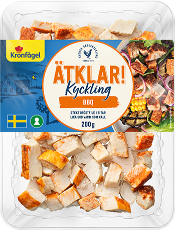 Ätklar kyckling BBQ från Kronfågel är färdiglagad kyckling i tärningar som med härliga toner av lök, paprika och en hint av chili skapar en harmoni mellan rökighet och kryddighet. Redo att serveras direkt från kylen så du kan njuta av förslagsvis en god sallad på rekordtid. Alltid svensk kyckling för en godare måltid.