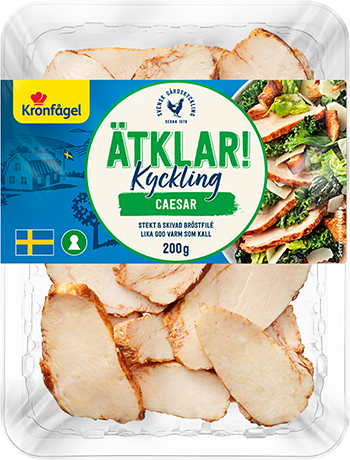 Ätklar kyckling Caesar från Kronfågel är färdiglagade kyckling i skivor anpassade för dig som älskar god mat men vill spara tid. Kycklingen är redo att avnjutas direkt i en fräsch sallad till lunch, god middag eller picknick. Alltid svensk kyckling för en godare måltid.