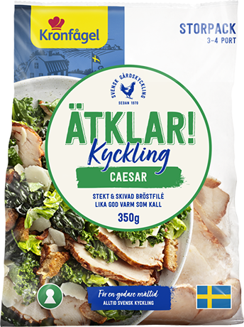 Ätklar kyckling Caesar från Kronfågel är färdiglagade kyckling i skivor anpassade för dig som älskar god mat men vill spara tid. Kycklingen är redo att avnjutas direkt i en fräsch sallad till lunch, god middag eller picknick. Alltid svensk kyckling för en godare måltid.