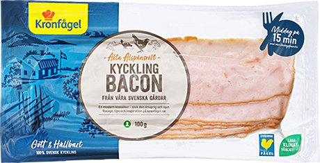 Ljust och smakrikt kycklingbacon av fin, svensk gårdskyckling. Varmröks över äkta alspån.
