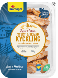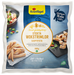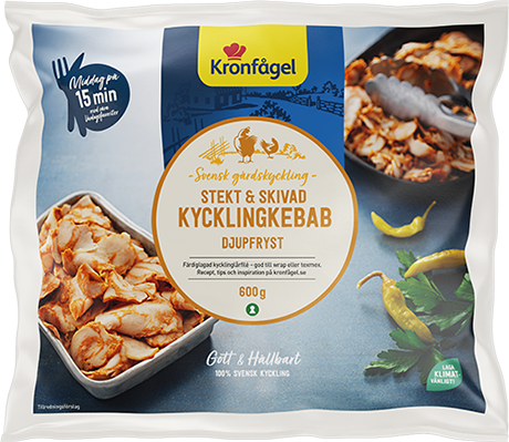 Kycklingkebab från Kronfågel i stekta, tunna skivor gjord på kycklinglårfilé av svensk kyckling. Färdiglagad och fryst kycklingkebab, värm och servera den på nolltid. Servera i en sallad, wraps, pastasåser, kycklingratänger eller varför inte i ett pitabröd med fräsch picklad rödkål. Förhöj middagen med nyttigt kycklingkebab, ett hälsosamt alternativ med kyckling.