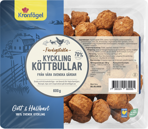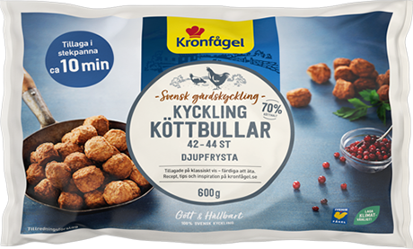 Kycklingköttbullar gjorda av det goda, ljusa, hälsosamma, klimatsmarta kycklingköttet. Tillagade på klassiskt vis färdiga att äta.