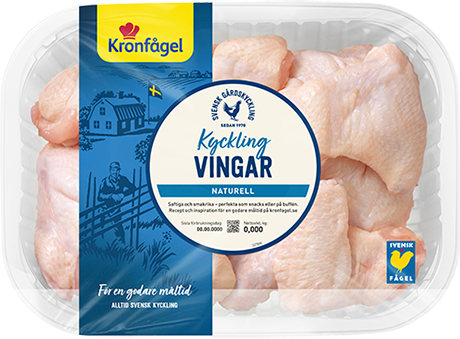 Kycklingvingar från Kronfågel är läckra att servera som förrätt, drinktilltugg eller på en fräsch buffé. Kycklingvingarna grillas eller steks i ugn och serveras med valfria såser och goda tillbehör. Alltid svensk kyckling för en godare måltid.