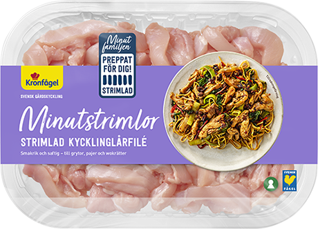 Färdigstrimlad kycklinglårfilé från Kronfågel är gjord av saftig kyckling utan skinn. Den passar utmärkt i wokpannan, till pasta, tacos eller grytor. Kycklinglårfilén kan även stekas och serveras med ris, grillade grönsaker och en god örtsås. Alltid svensk kyckling för en godare måltid