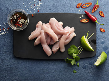 Kryddstekt strimlad lårfilé med ris och Indisk raita