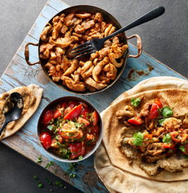 Kormagryta med kyckling, curryrostade kikärtor och naanbröd