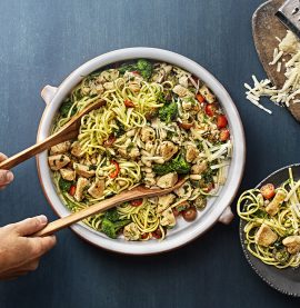 Linguini med kyckling, pesto, tomat och parmesan