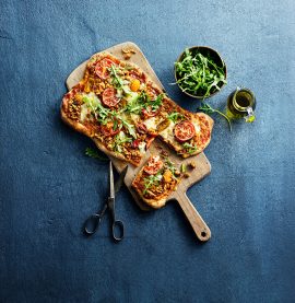 Kycklingfärspaj med getost, tomater, pinjenötter och basilika