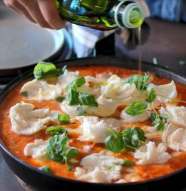 Kycklingfrikadeller i tomatsås med tagliatelle och burrata