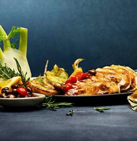 Stekt kycklingfilé med rostad fänkål samt tomatsky