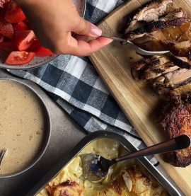 Stekt kycklingbröstfilé med chèvregratinerad potatisgratäng