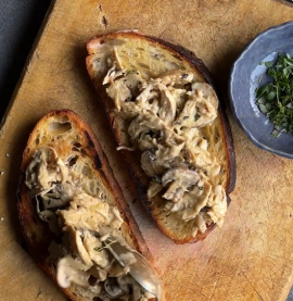 Citronstekt lårfilé med svampragu, svampkesella och rostad potatis