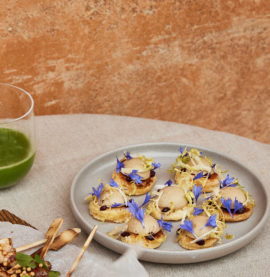 Kycklinglevermousse med picklad rödlök på frasig smördeg