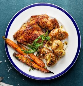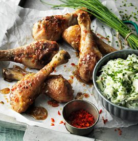 Citronstekt kycklingklubba med dragondoftande rotfrukter och tzatziki