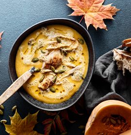 Pumpasoppa med kycklingben och rostade pumpafrön