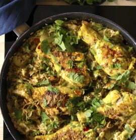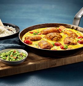 Stinas Kycklingpanna original med mangosalsa och patatas bravas