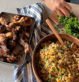 Orientaliska kycklingvingar med kikärtsröra och svart ris