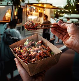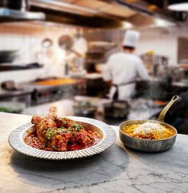 Stek kycklingen i olja i 5-6 minuter tills den är genomstekt. Stek därefter äggen sunny side up.