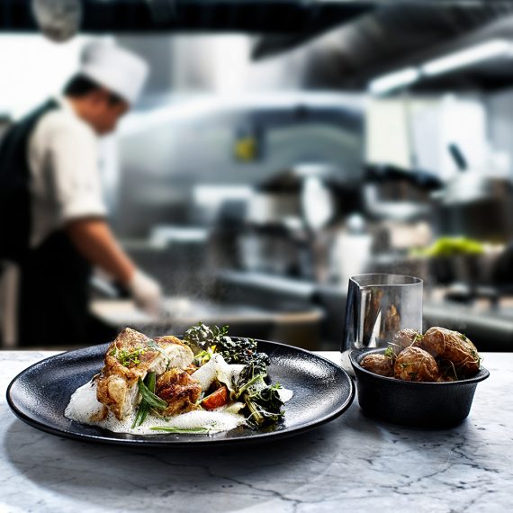 Stekt kycklingbröst med rödbetor, kapris och potatispuré