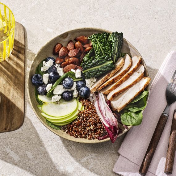 Testa denna lyxiga "forest green" salad som är en fröjd för ögat. Med färdiglagad kyckling blir salladen matig på nolltid