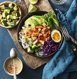 Sweet chili kyckling bowl med avokado och sjögräsnudlar