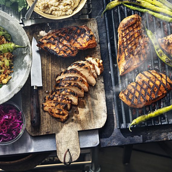 Grillad kycklinglårfilé med ugnsrostad hel blomkål